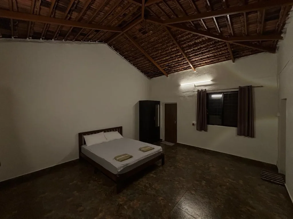A warm, spacious countryside cottage inspired by the legendary Rajgad fort, perfect for couples or small families who want comfort without losing the raw feel of nature. Large windows open to greenery and birdsong, while simple earthy interiors keep the room cool and peaceful through the day.