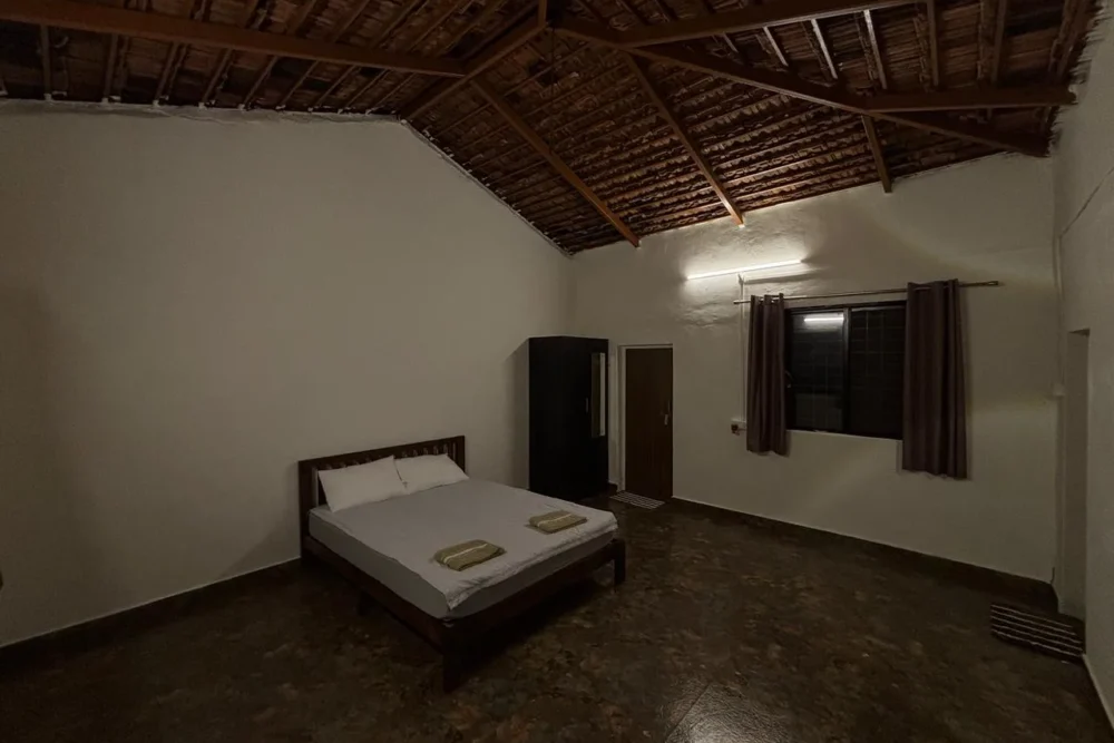 A warm, spacious countryside cottage inspired by the legendary Rajgad fort, perfect for couples or small families who want comfort without losing the raw feel of nature. Large windows open to greenery and birdsong, while simple earthy interiors keep the room cool and peaceful through the day.