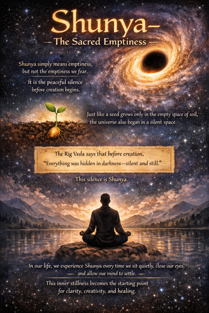 In our life, we experience Shunya every time we sit quietly, close our eyes, and allow our mind to settle. This inner stillness becomes the starting point for clarity, creativity, and healing.